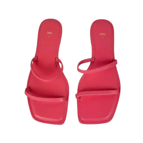 Zara Slide Sandals Sz 40 US 9.5 Barbie pink color Leather sandals Slide on sandals Square toe Doubl... Show more