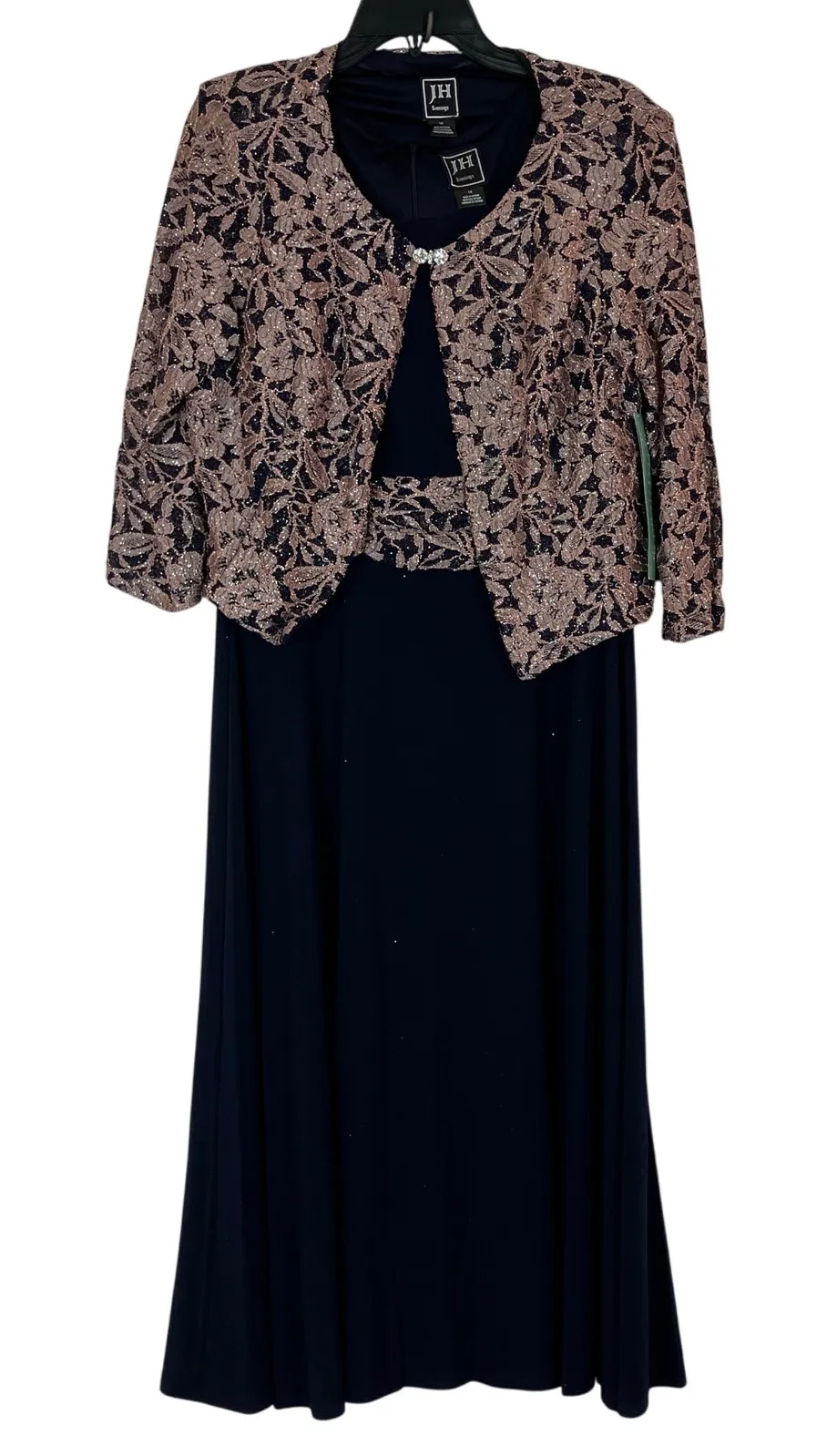 Jessica Howard Evenings | Navy Pink Sparkly Floral Jacket & Dress Set Womens 14 Blue - $70 New With Tags - From Emily
