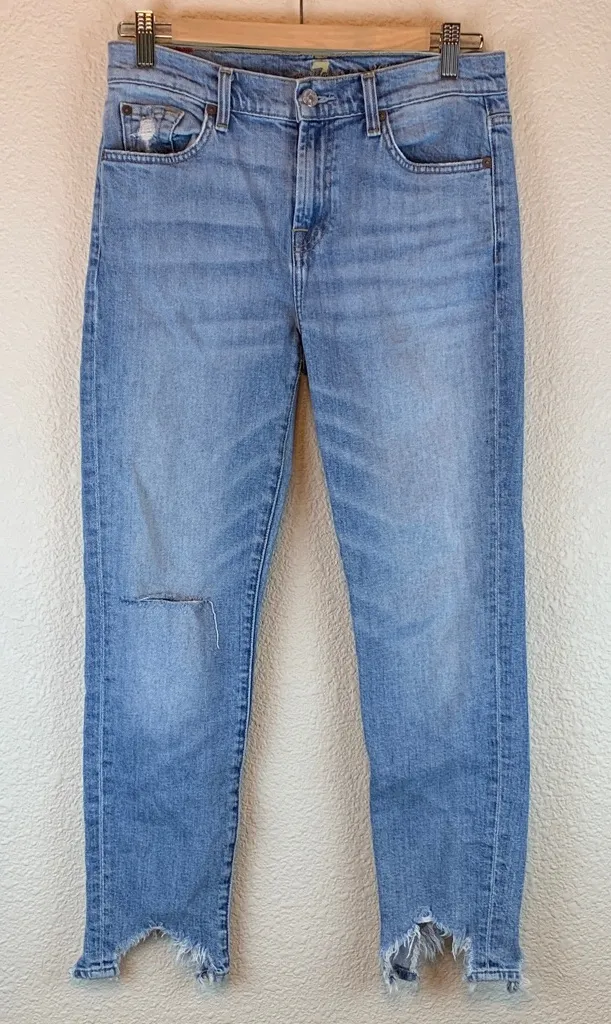 7 for all mankind sz 27 Approximate Measurements Waist: 29” Length: 36” Rise: 9.5” Inseam: 27” Ke... Show more