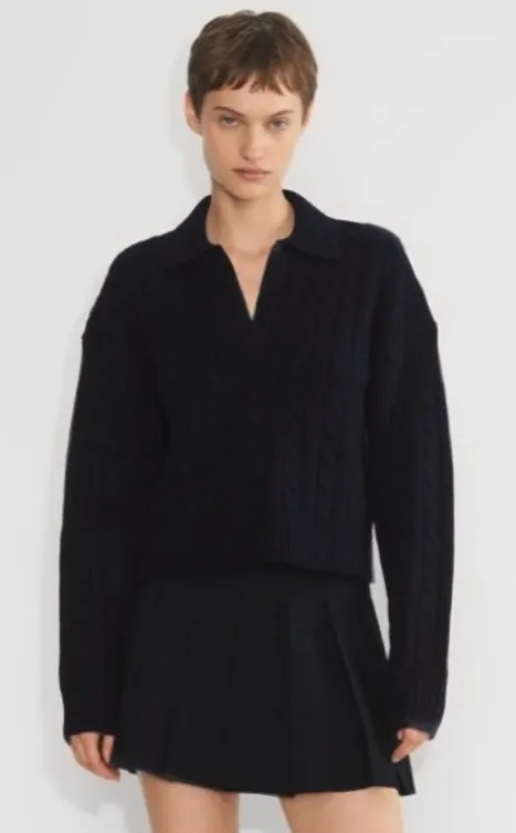 This black cable knit cropped oversized sweater is in good condition with no flaws! Make an offer!