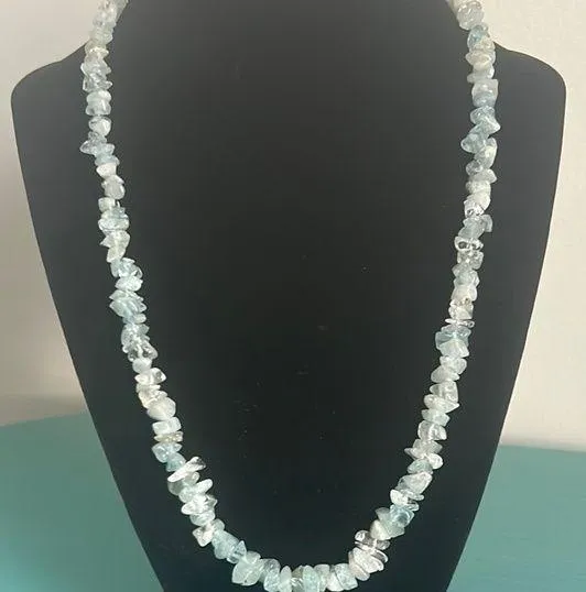 Excellent preloved condition - Vintage Artisan Aquamarine Sea Blue Chip-Style Beaded Strand Necklace This captivating necklace features a strand of translucent blue chip-style Aquamarine beads, offering a unique and organic texture. The irregular shapes of the beads create a dynamic look, perfect for adding a touch of color to any outfit. 21” with barrel twist closure. Due to lighting item’s color may vary slightly from pictures. Thanks for checking out my listing.