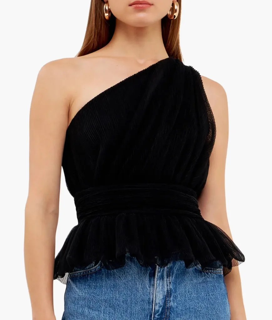 New with tags! No flaws/wear Draped tulle in a one-shoulder silhouette creates this glamorous tulle... Show more