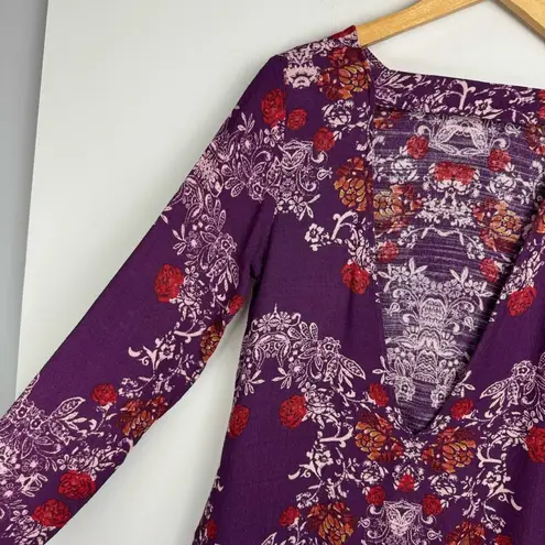 Free People Dress / Tunic Sz XS Purple Boho floral print Long sleeves Open cutout in back Tiered he... Show more