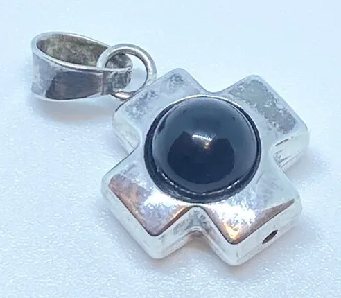 Add a touch of elegance to your outfit with this beautiful Sterling Silver 925 Round Onyx Cross Pend... Show more