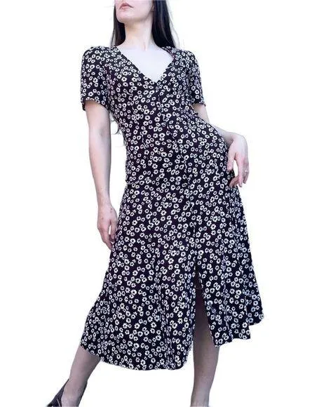 . Transition to fall with this chocolate brown ditzy floral midi dress! Features: Button up front T... Show more
