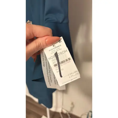 Radiate elegance in this stunning Alex Evenings sheath dress, designed to make you shine. The deep teal hue provides a sophisticated canvas for the exquisite ruffled detailing at the hip, adorned with a sparkling embellishment that catches the light with every move. Flared bell sleeves add a touch of dramatic flair and feminine charm, while the flattering silhouette creates a beautiful, elongated line. This dress is perfect for a wedding guest, a formal dinner, or a special evening out. PTP - 16" Waist - 13.5" Length - 38" Style: Sheath, Wrap Dress Dress Length: Knee Length Department: Women Sleeve Length: 3/4 Sleeve Pattern: Solid Occasion: Party/Cocktail, Formal Material: Polyester Blend Fabric Type: Woven Theme: Classic, Wedding, Holiday Neckline: Round Neck Keywords: Alex Evenings, sheath dress, teal dress, ruffle dress, bell sleeves, embellished dress, cocktail dress, formal dress, special occasion, evening wear, sophisticated, elegant, wedding guest