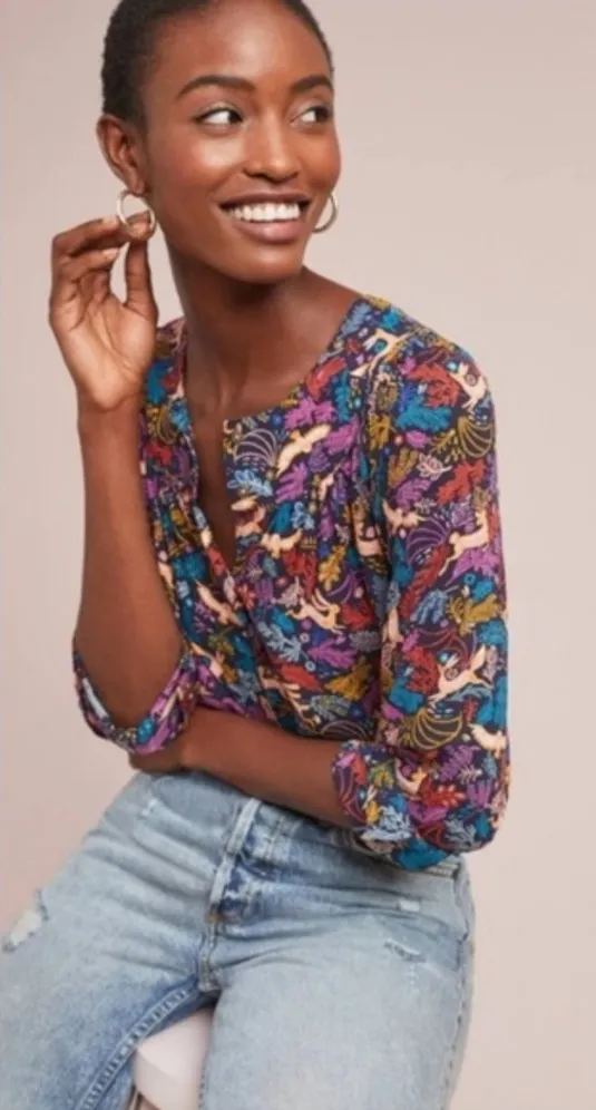 25 of 52 conversations by Anthropologie limited edition blouse Woodland animal print size 4 Very g... Show more