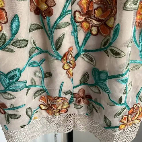 This elegant mini dress features intricate floral embroidery in vibrant colors. Perfect for any occasion, it combines style and comfort effortlessly. It does have some rough hem at the bottom Laying Flat Measurements Bust Width: 16.0 in. Waist Width: 13.5 in. Hip Width: 18.5 in. Body Length: 34.0 in. Sleeve Length: 25.0 in. Bottom Hem Width: 17.5 in. Offers are Welcomed and considered Pet Free Home Smoke Free Home