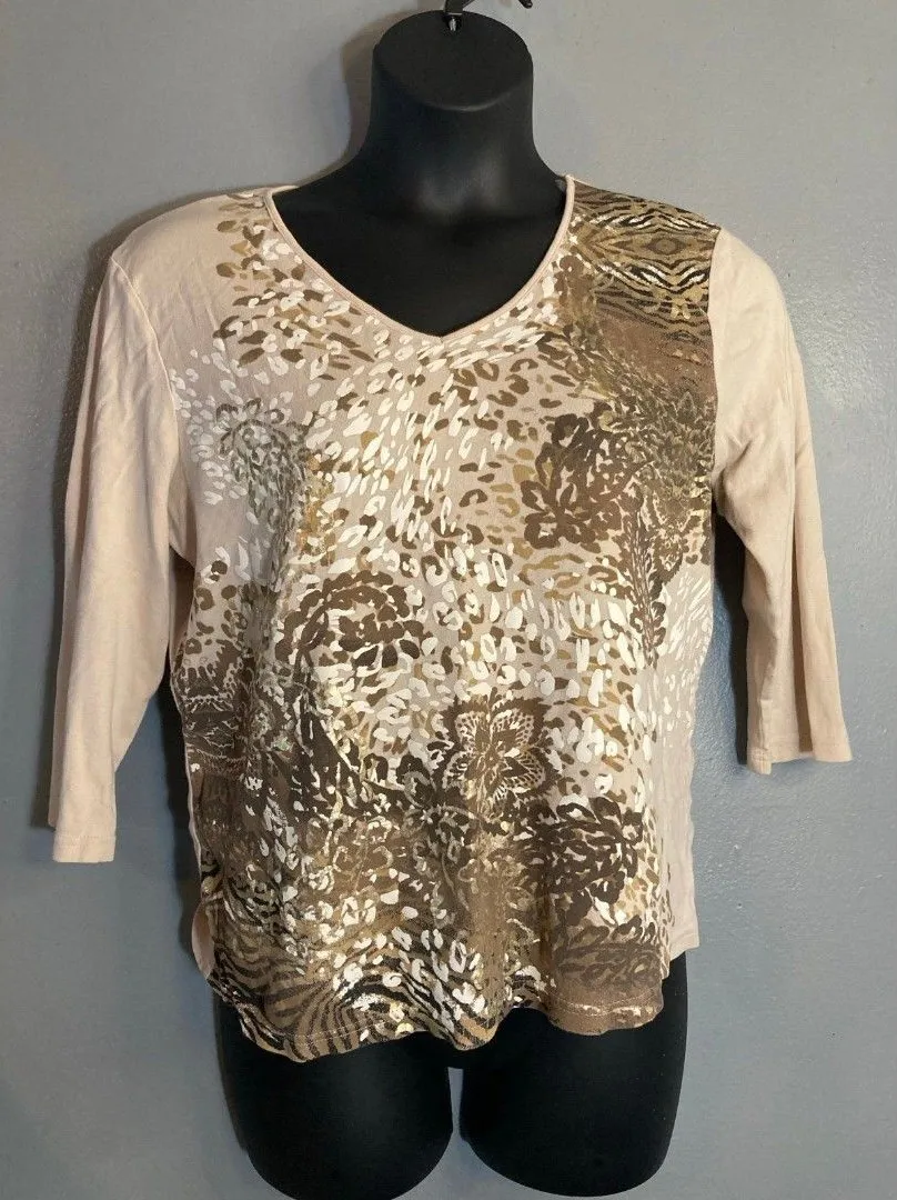 size : xl mannequin is an adult size- large/xl approximate measurements laying flat ; pit to pit : 21 inches sleeves : 15 inches shoulders to bottom : 23 inches material content : 100% cotton good condition ships next business day colors might be different depending on your device preloved smoke free/pet friendly home items are shaved, steamed and/or washed as needed