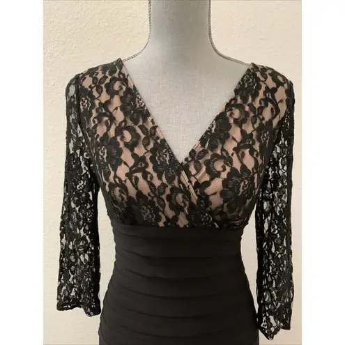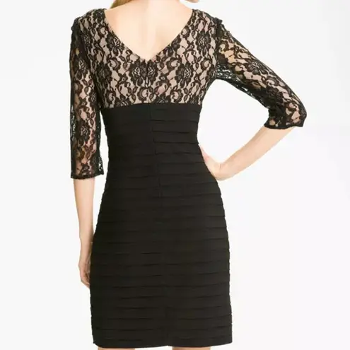 Beautiful Adrianna Papell Black Shutter Pleated Lace Overlay Dress Size 4 Small S LBD. Excellent Pre... Show more