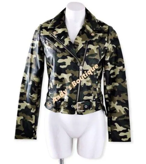 MICHAEL KORS SMOKY OLIVE CAMO LEATHER JACKET, GREEN NEW WITH TAG Features: - Collar - Long sleeves... Show more