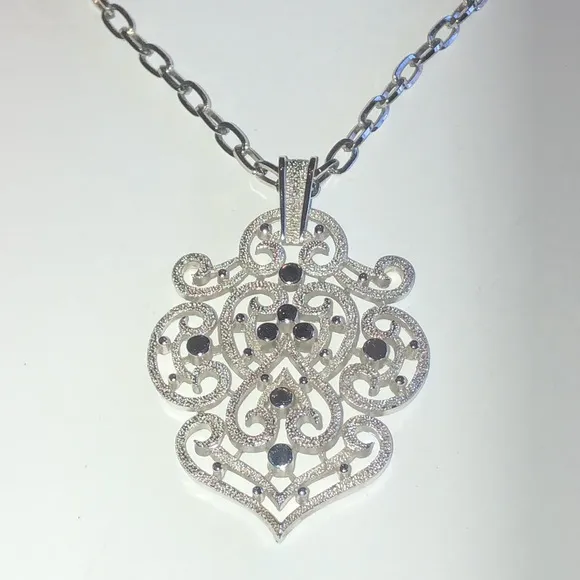 Trifari Crown Silver Tone Vintage Cutout Pendant Boho Statement Necklace - $18 - From Vault