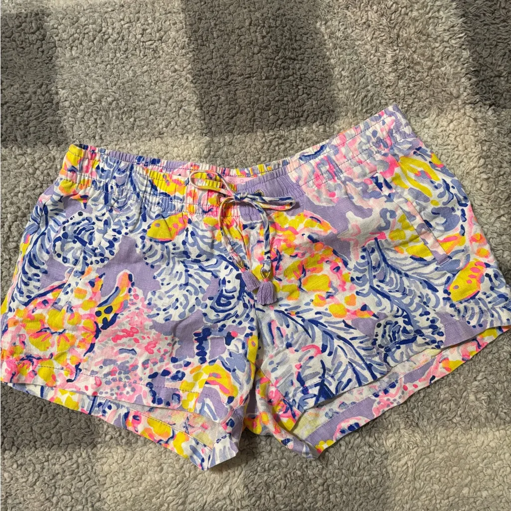 Bright and stylish high waist shorts. Features a playful mix of pink, yellow, and blue. Perfect for... Show more