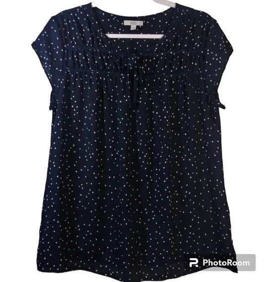Croft & Barrow Navy Blue Star Print Casual Short Sleeve Blouse Size M Short sleeve Navy blue with... Show more