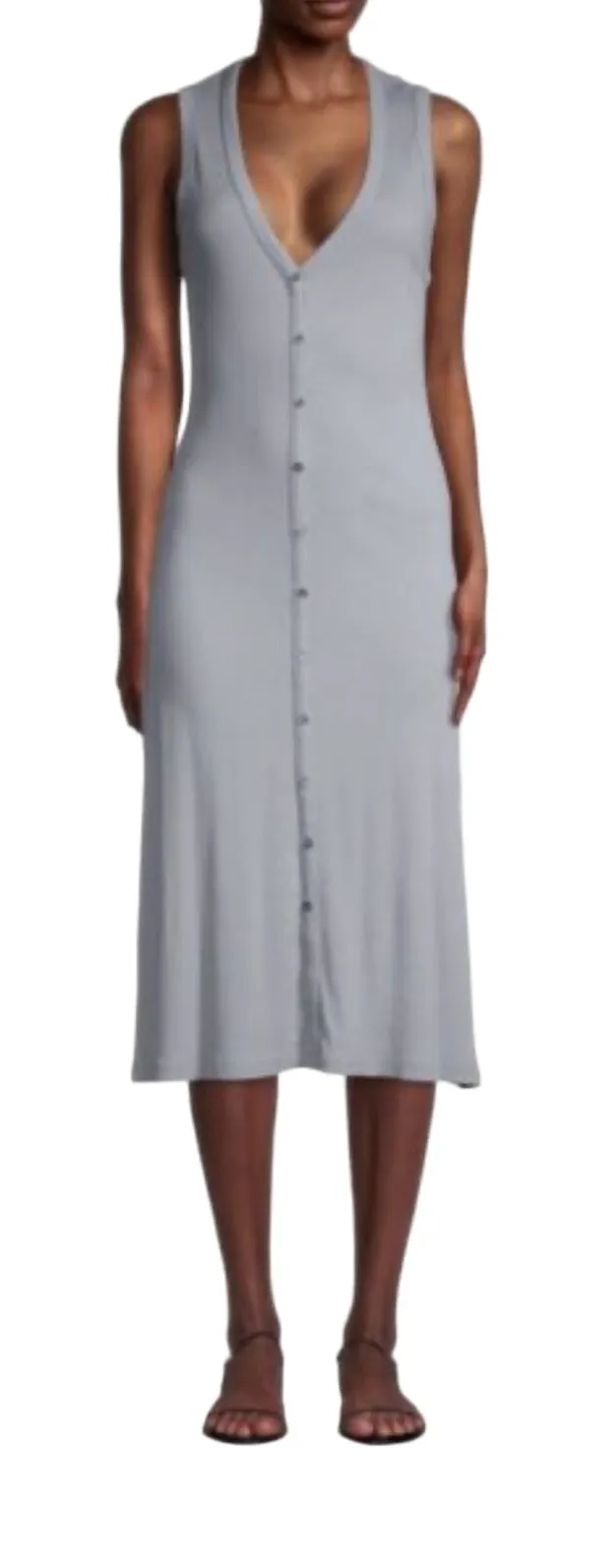 New without tags in perfect condition Retails for $175 Vanity sizing 2 = US size medium Effortless A-line dress styled with a deep V-neck and ribbed finish. Deep V-neck Sleeveless Button front Cotton - very stretchy Machine wash Imported A-line silhouette About 45" from shoulder to hem 28-36 inches bust