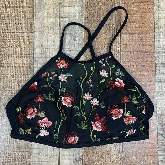 Xhilaration size small swim top Beautiful floral embroidery Sheer mesh near top In excellent condit... Show more