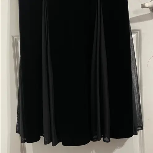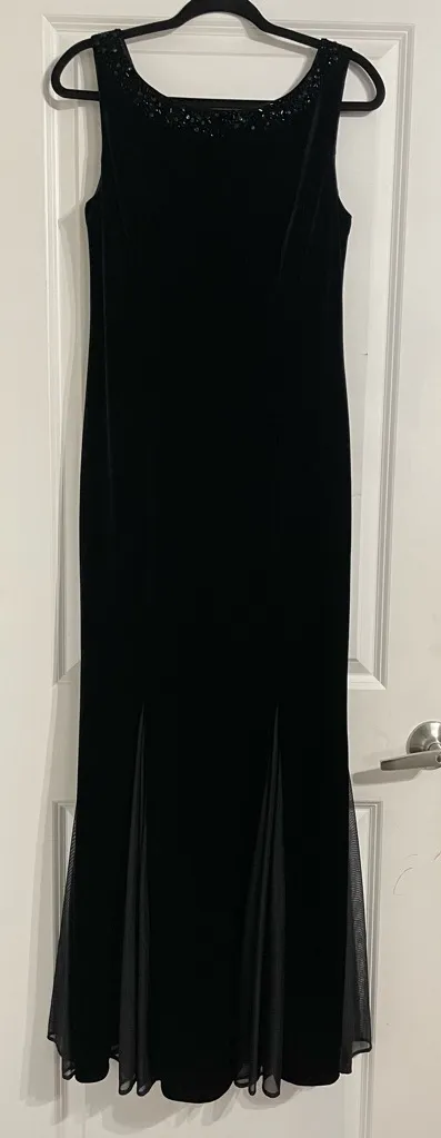 Jessica Howard Black Vintage Dress Velvet Beaded Neckline Sleeveless Mermaid Whimsigoth Maxi Witchy Dark Mesh Panel Asymmetrical Hem Fairy Y2K 90s Prom Event Black Velvet Maxi Dress with Trumpet Skirt Sheer Chiffon Godets Romantic Excellent condition 8