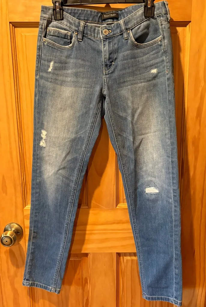 These White House Black Market The Girlfriend Jeans Skinny Stretch Distressed 5 pocket design, rhine... Show more