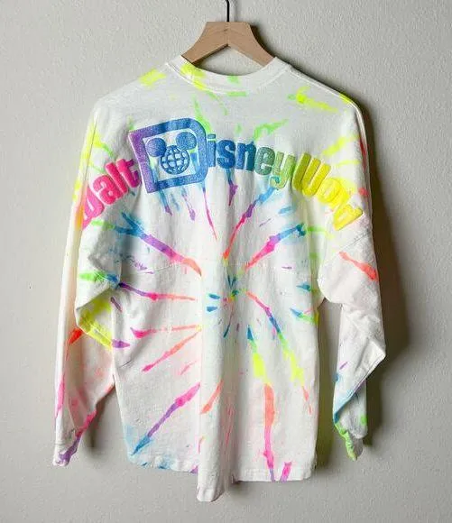 disney parks walt disney world white neon tie dye glitter spell out spirit jersey top size xs great... Show more
