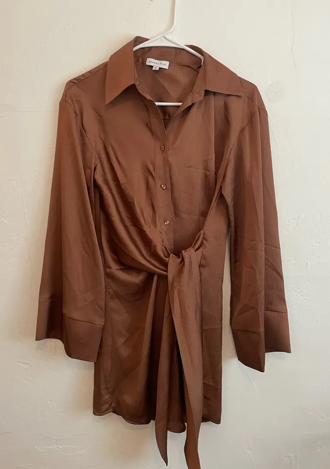Elegant tan blouse by Gianni Bini. Features a unique textured design.
