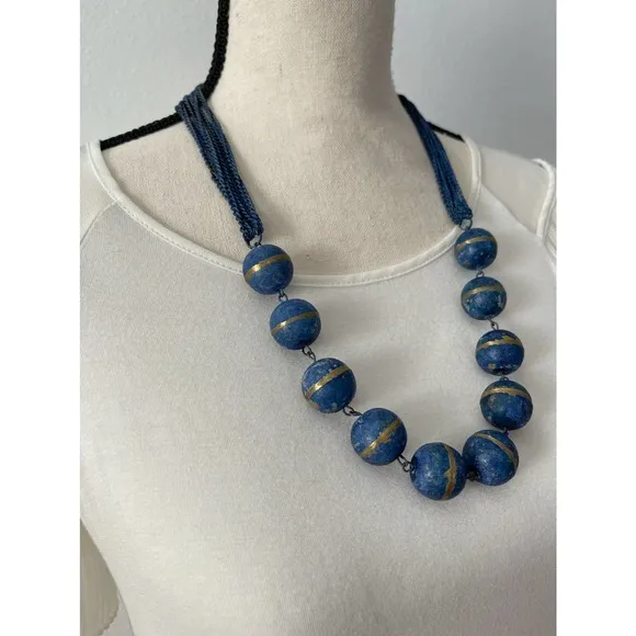 Vintage Blue Beads with Gold Accents Matinee Necklace Color: Blue with Gold Style: Matinee Closure: Hook and Loop Features: Large blue beads with multi-strand blue chains, Gold accents on large blue beads GUC...These are hand painted vintage beads that have lost a little of their paint however gives the piece a new rustic feel Make me an offer...bundle for shipping savings.