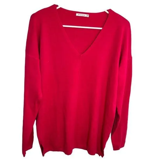 Great condition. Staccato. Kehlani v-neck sweater. Bright pink color. Tunic length. Super soft pull over V-neck sweater with a center front seam and long sleeves. Style 51794J. Size Medium. 55% viscose, 45% nylon. Pit to pit laying flat 23” Shoulder to hem 27” Sleeve (seam to hem) 21” All measurements are approximate and taken lying flat. Smoke free home. No trades, offers welcome.