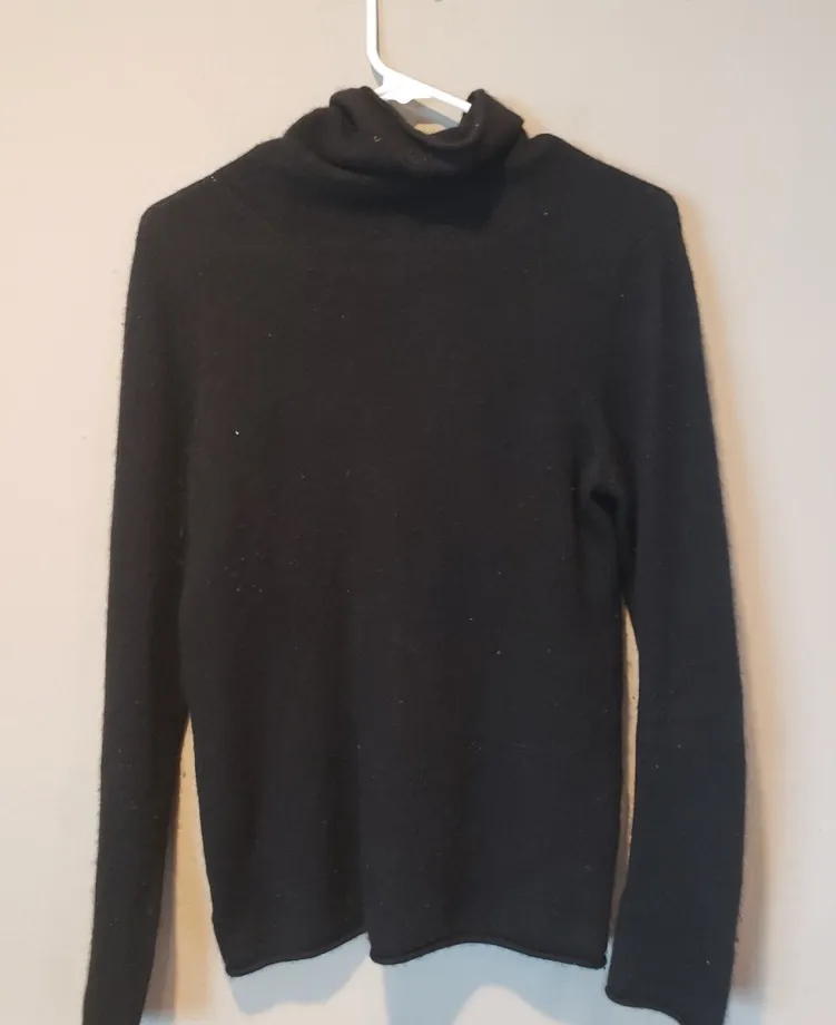 Elegant black cowl neck sweater. Perfect for layering and versatile style.