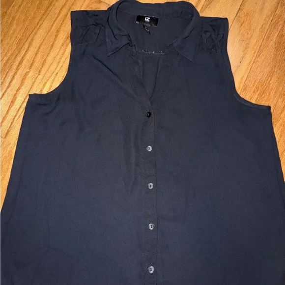 Elegant and versatile black sleeveless top perfect for any occasion. Features a classic button-down... Show more