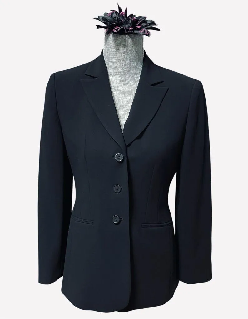 Ann Taylor blazer, Ann Taylor petites, petite blazer, black blazer jacket, women’s career blazer, office wear, workwear, tailored blazer, professional jacket, size 4P, triacetate blazer, interview jacket, business casual, formal blazer