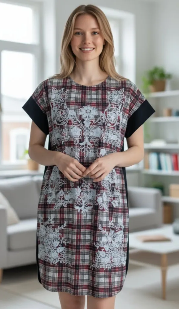 Short sleeve Round neckline Pullover styling Tweed Embroidered Plaid 98% polyester 2% elastane