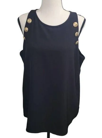 Calvin Klein Women's Black Sleeveless Tank Top Sz M Crew Neck Button Detail Good pre-owned conditio... Show more