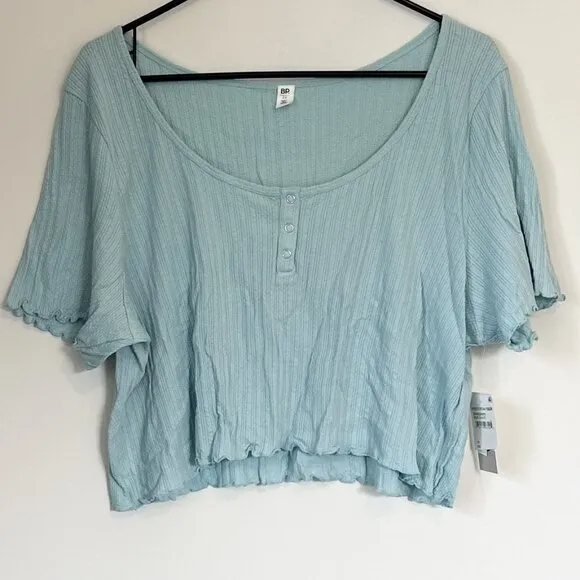BP by Nordstrom Pointelle Rib Cropped Short Sleeved Henley Size: 3X Color: Blue Glaze (Light Blue)... Show more