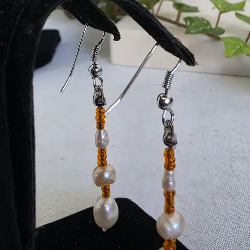 Beautiful handcrafted necklace and earrings set Silver tone hardware Freshwater pearls glass beads... Show more