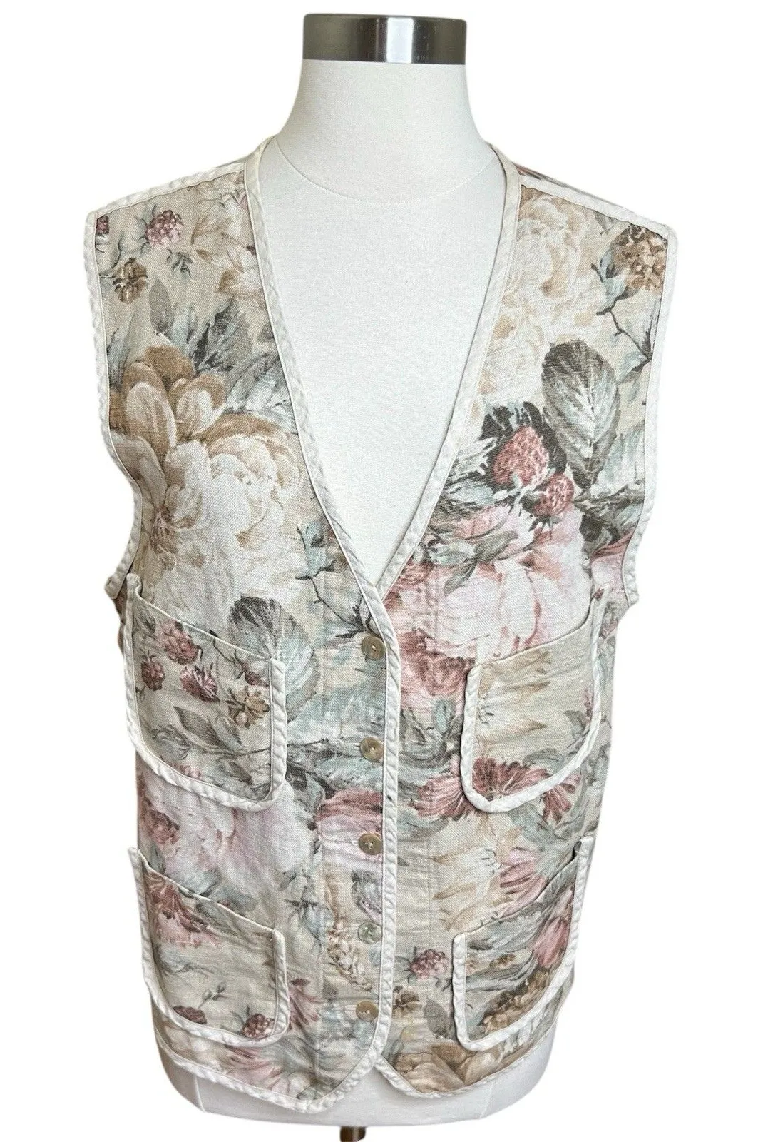 💜 3 Items For $30 Sale 💜 Great Pre Owned Condition. Has A Few Minor Marks See Photos Size Medium Material Linen Cotton Blend Beige Neutral Sleeveless Button Down Vest. Front Pockets.