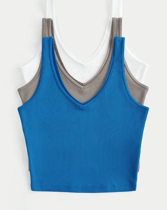 3 Hollister Ribbed Seamless Fabric V-neck Tank Blue - Light Brown - White Size L Black Size L - $25 - From Ximena