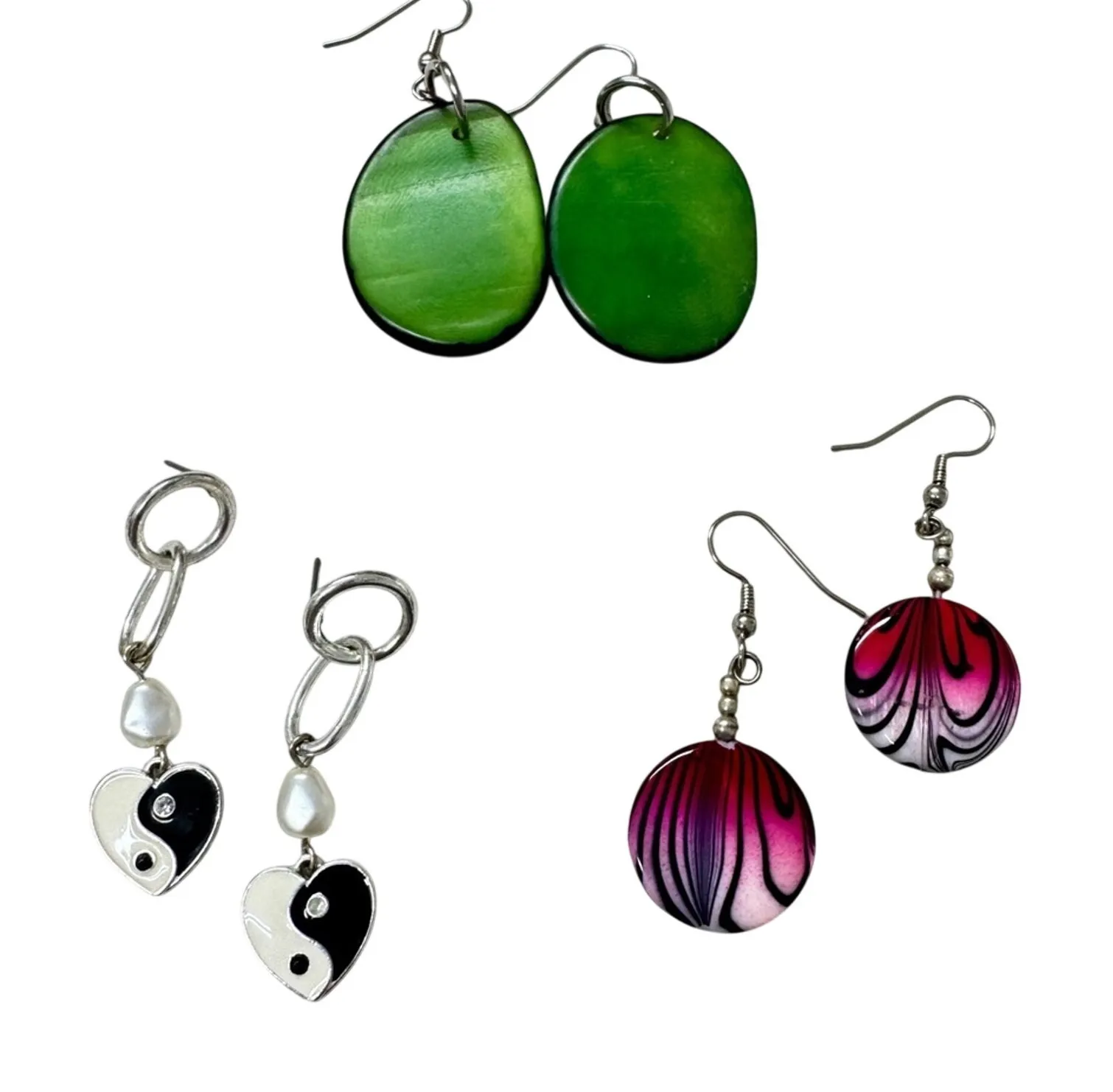 3 Pairs Dangle Earrings Boho Yin Yang Green Pink Pierced Womens Jewelry - $20 - From Lisa