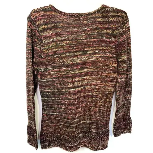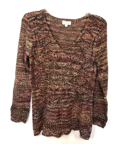-3. Ponsesa Women's Open Knit Long Sleeve V-Neck Pullover Sweater Multicolor Medium Brand: Ponsesa Department: Women's Size: Medium Style: Sweater Color: Multicolor Neckline: V-Neck Sleeve Length: Long Sleeve Closure: Pullover Pattern: Solid Material: 100% Polyester Condition: Excellent used condition Measurements Length: 29" Chest: 22" Bohemian, Fall, Knit, Winter, Office, Career Weight: 15 oz Box 003 See pictures for measurements and additional details Bundle 2 or more items for additional savings and pay only one shipping fee. Measurements are approximate and provided as a courtesy, not a guarantee of fit. Smoke free, pet free home. Actual colors may vary due to differences in lighting and computer monitors.
