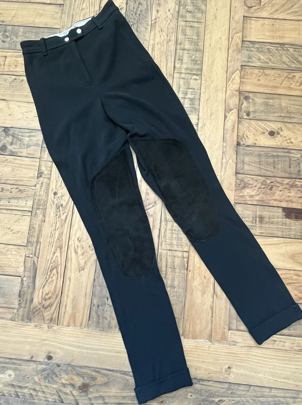 FEATURES Pants have been gently worn with no major stains, snags or tears. Pants features a front button and zipper entry, suede inner leg,, beltloops, ribbed fabric and a skinny leg silhouette with a cuffed hem. FLAWS N/A BRAND Thalian TAG SIZE 28L COLOR Black SHELL FABRIC 97% Nylon, 3% Spandex APPROXIMATE MEASUREMENTS Inseam: 33" Waist (across, laying flat, unstretched): 13.25" Hip (across, laying flat, at bottom of zipper): 17" Length: 44" Top Thigh (across, flat): 10.5" Bottom Opening (across, flat): 6"