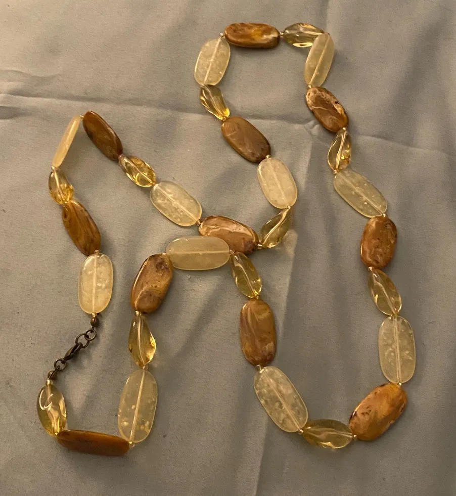 34” Beaded Necklace 1” Oval Beads Brown Tan Cream & Clear Casual Lightweight - $10 - From Terri
