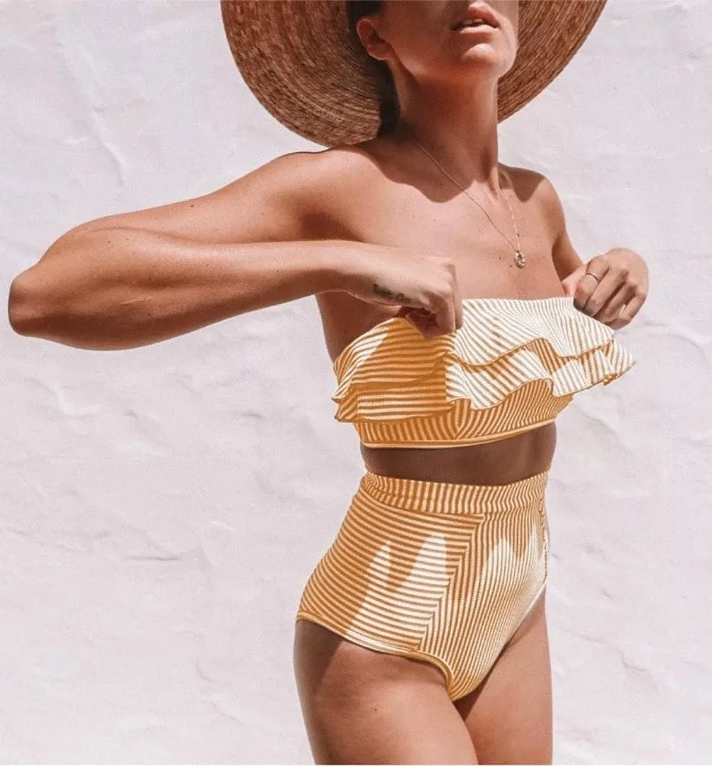 Boutique 341 yellow ruffled high waist swimsuits Size L - $25 (50% Off Retail) New With Tags - From Pigsz