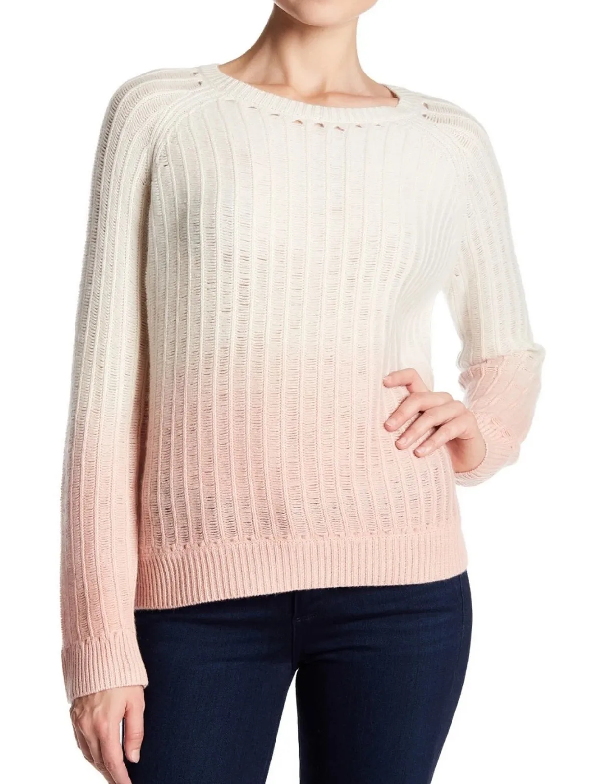360 Cashmere Semi-sheer distressed knit pullover with a trendy dip dye effect size Small. pink and o... Show more