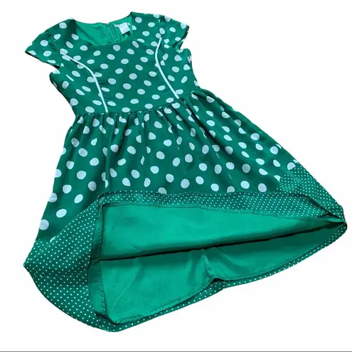 SO CUTE!! Esley from ModCloth Fit & Flare Green & White Polka Dot Dress EUC Size 2 Fully Lined