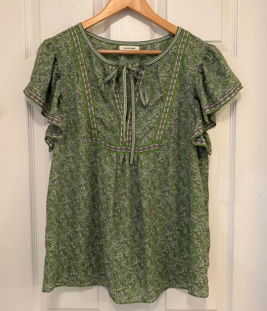 NWOT Max Studio Floral Tie Neck Butterfly Sleeve Blouse Green Size L - $50 (26% Off Retail) - From Amber