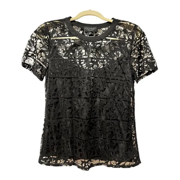 Like new! LAUNDRY Black floral shear mesh overlay fabric over a black attached tank. Great with jea... Show more