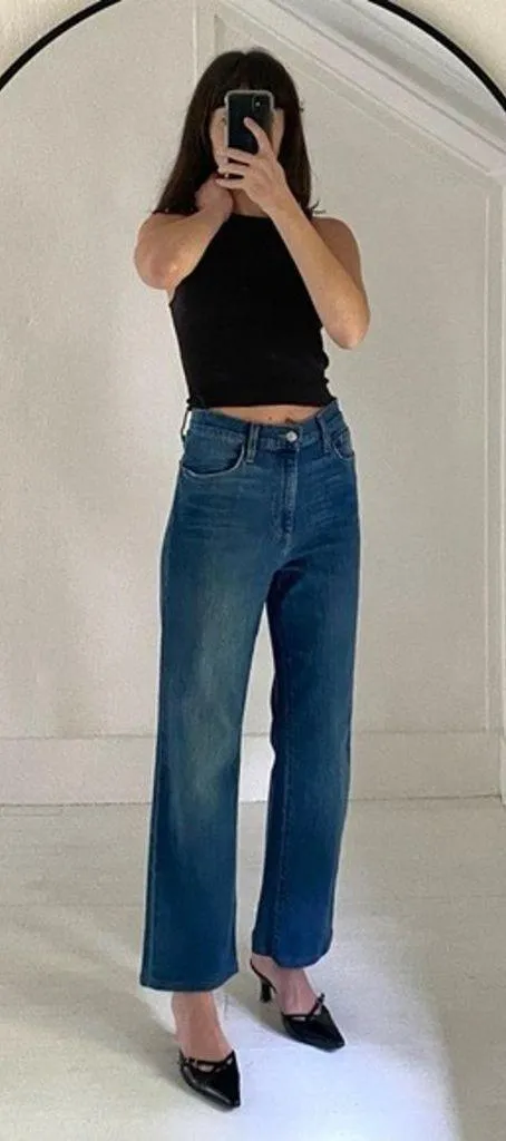 Joe’s Jeans medium wash blue, ‘Renee’ high rise wide leg crop jeans. Stretch cotton denim constructi... Show more