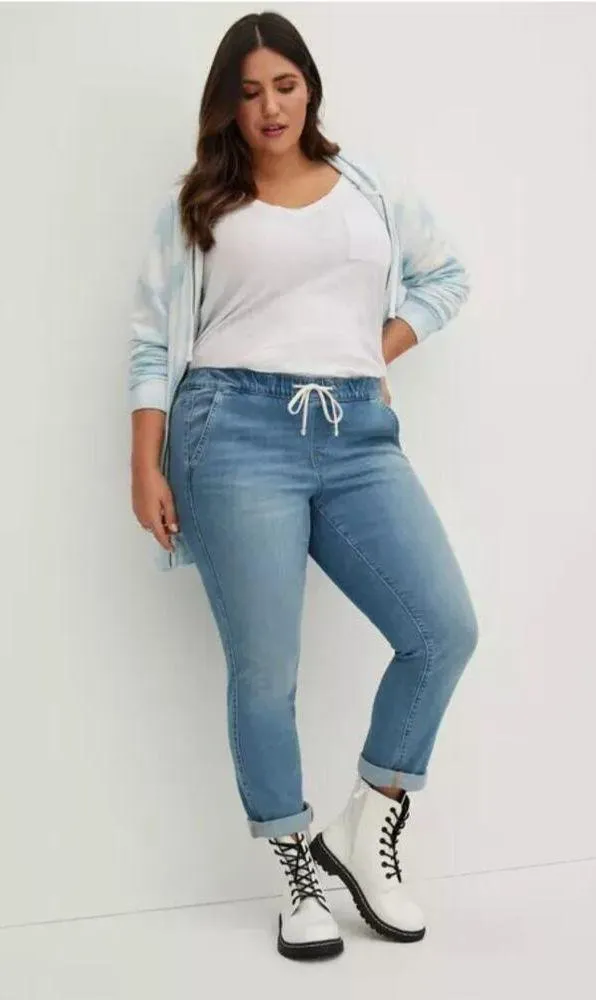 Pull-On Boyfriend Straight Super Soft Mid-Rise Jean Size 5X Plus Light Wash Waist flat 25.5" Inseam... Show more