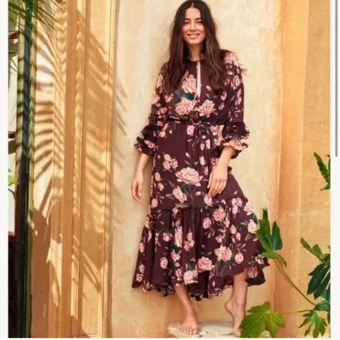 Johanna Ortiz x H&M Brown Floral Ruffle Midi Dress Women’s Medium Boho Party Cocktail Excellent cond... Show more