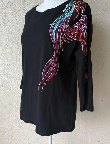 . The Bob Mackie Sequin Peacock Vintage 90s Rhinestone Eye Dolman Sleeve Top in Black is a glamorous... Show more