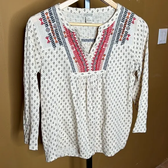Lucky Brand Womens Boho Diamond Embroidered Top Long Sleeve V-Neck Size XS Red - $24 (75% Off Retail) - From Bronwen