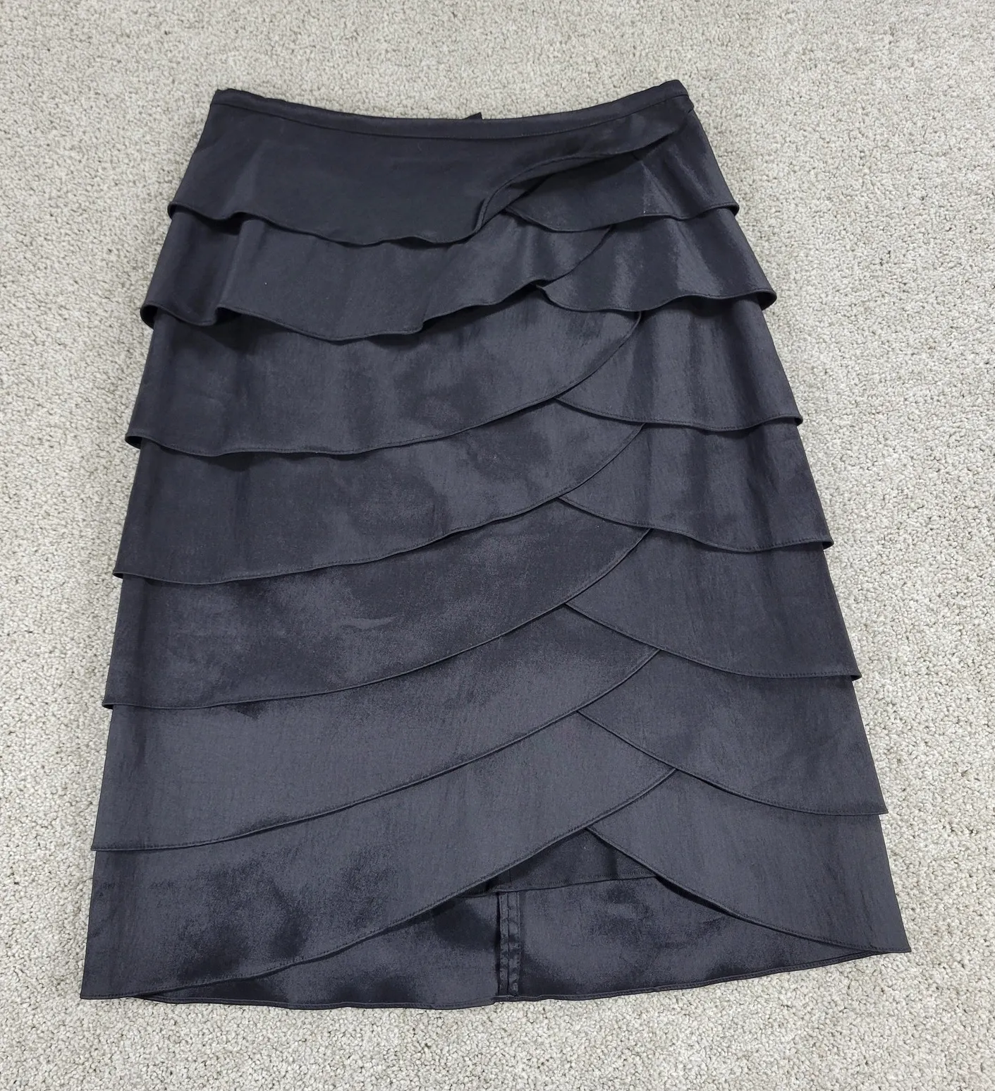 Cachet Womens Skirt Medium Black Ruffle Layered Pencil Straight Career Office Product Description: Measurements: 15” w x 26” long - Brand: Cachet - Condition: Excellent - Ruffle - Layered - Pencil Straight Cut - Back Zip - Career/Office - Fabric Content: 48% Polyester 45% Nylon 7% Lycra - Color: Black Thanks for shopping with me today! I ship on orders received by 3pm each day. Most items are lovingly used and therefore show appropriate signs of wear. I do my best to make note of any irregularities with *. Please feel free to inquire.
